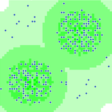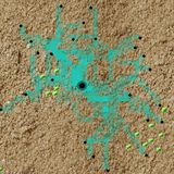 A simulation of cells releasing and following a pheromone, causing aggregation without central control.